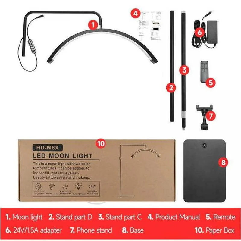 Το επαγγελματικό φωτιστικό σε σχήμα μισοφέγγαρου διαθέτει εργονομικό σχεδιασμό και βαρέως τύπου αντιολισθητική μεταλλική βάση που το καθιστά σταθερό και συμπαγές, αποφεύγοντας τον κίνδυνο της πτώσης. Έχει ρυθμιζόμενο ύψος από 125cm έως 180 cm για να εξυπηρετεί κάθε ανάγκη. Η κατασκευή με flexible σχήμα και πλήρη περιστροφή 360 μοίρες εξασφαλίζει τα μέγιστα αποτελέσματα στην περιοχή εργασίας και τον απόλυτο φωτισμό χωρίς σκοτεινά σημεία. Κυρτή σχεδίαση σε σχήμα μισοφέγγαρου (half moon) που μειώνει αποτελεσματικά τις σκιάσεις, ενώ παράλληλα προστατεύει τα ματιά από την υπερέκθεση. Είναι ιδανικό για eyelashes and brows experts, tattoo & nail artists, αισθητικούς, beauty salons αλλα και για όσους απαιτούν τον τέλειο φωτισμό.