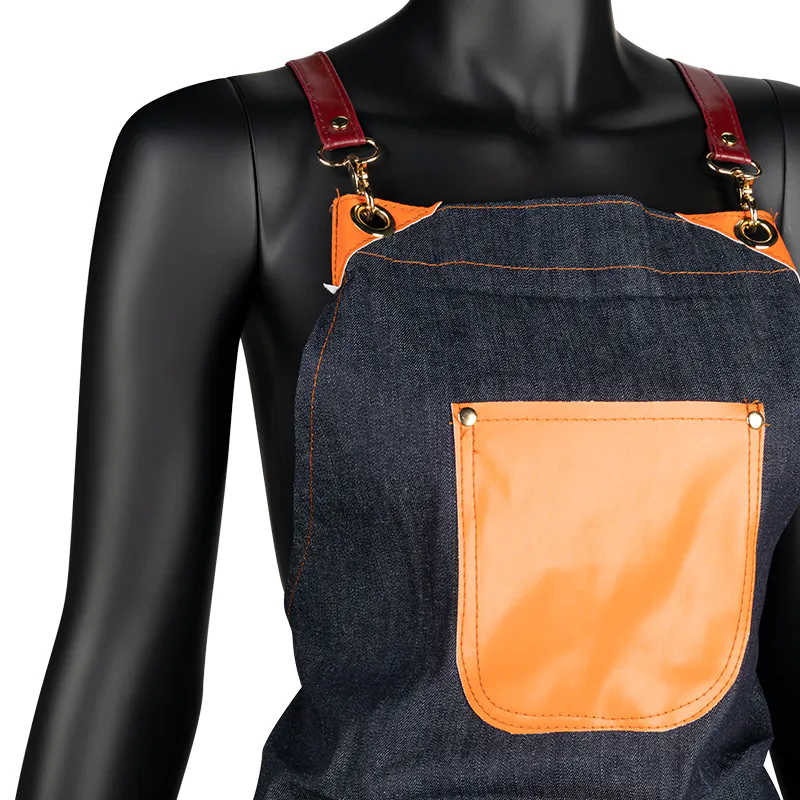 a denim apron with leatherette inserts not only looks great, it is also of high quality. one size fits all, thanks to the unique design with adjustable straps that can be removed for easier cleaning.