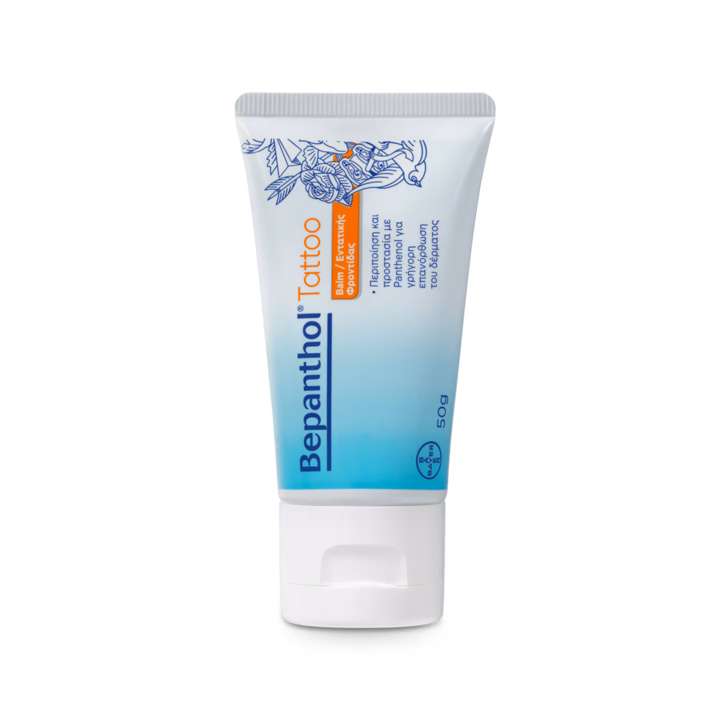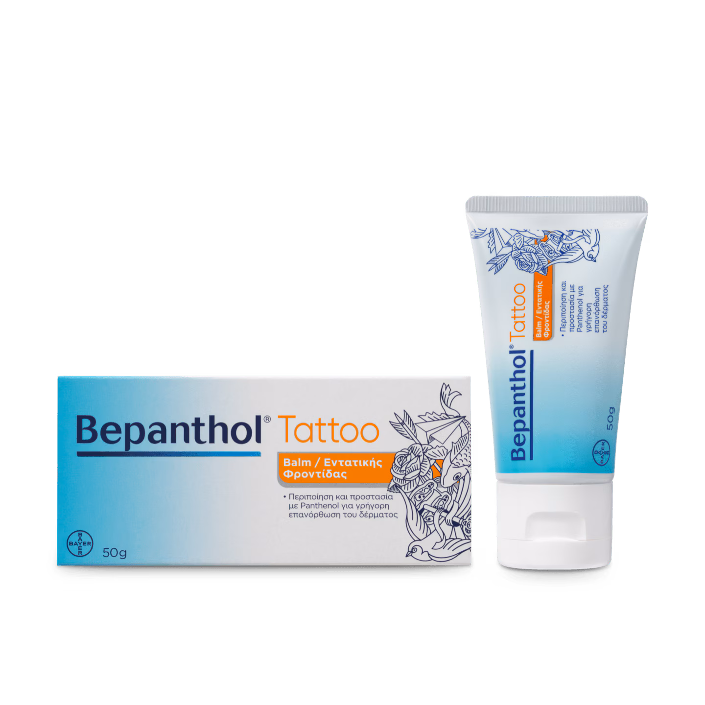 H Bepanthol® Tattoo Balm καταπραΰνει, ενυδατώνει και επανορθώνει το δέρμα με νέο tattoo. Δημιουργεί μια προστατευτική στοιβάδα που επιτρέπει στο δέρμα να αναπνέει και του παρέχει την απαιτούμενη υγρασία, που το βοηθά να αναγεννηθεί εκ των έσω. Η Bepanthol® Tattoo Balm περιέχει 5% πανθενόλη (προβιταμίνη Β5) που βοηθά στη γρήγορη επανόρθωση του δέρματος. Παράλληλα, διατηρεί την ομορφιά του tattoo4, ενώ είναι εύκολη στην εφαρμογή χωρίς να αφήνει υπολείμματα13