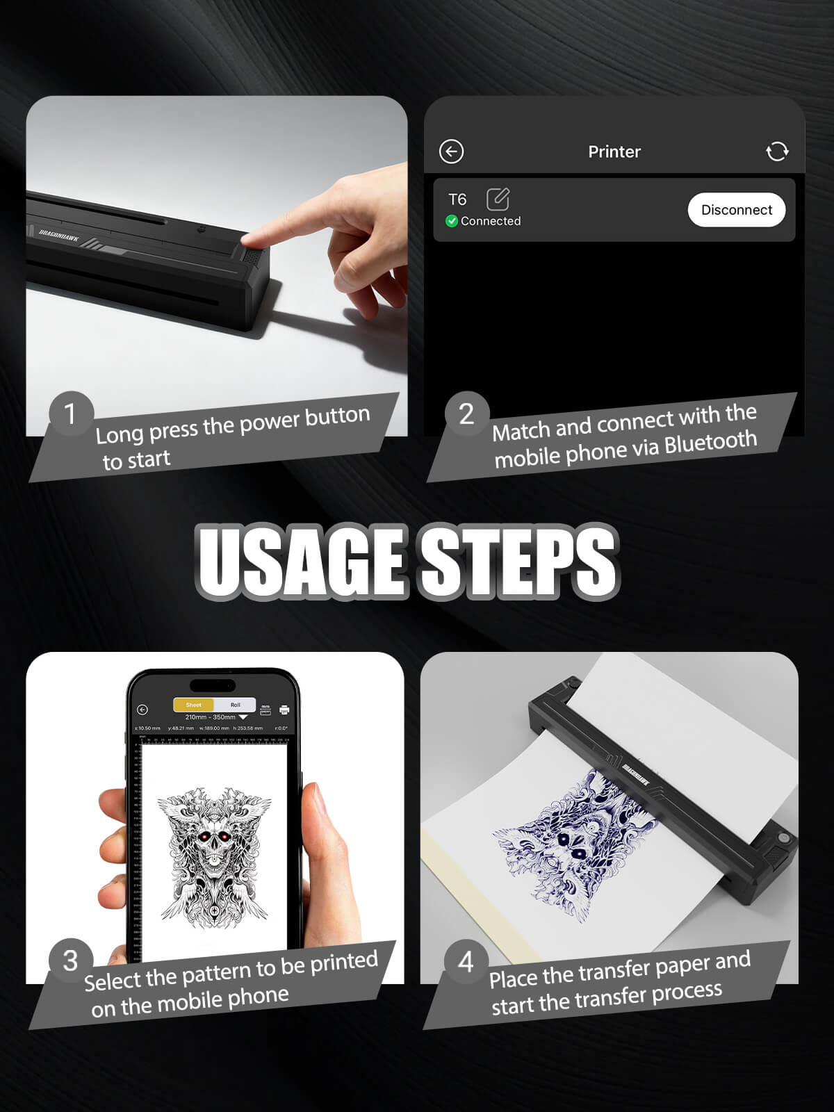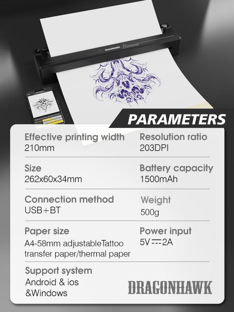 Ασύρματος Θερμικός Εκτυπωτής Dragonhawk A4 Wireless Tattoo Stencil Printer