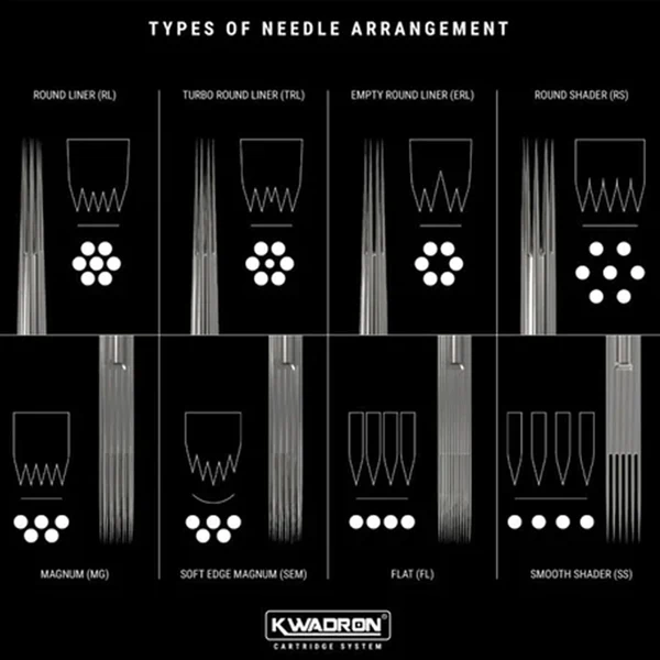 Soft Edge Magnum cartridges, also known as curved magnums, are a special type of tattoo needles characterized by rounded tips, resulting in softer and more blurred lines and shadows. These needles are ideal for creating smooth color transitions and delicate gradients on the skin. With their design, Soft Edge Magnum cartridges allow for precise and controlled tattooing, making them the top choice among professional tattoo artists. All Kwadron cartridges feature the most advanced rubber membrane and super sharp needles that maintain their sharpness throughout the tattooing process.