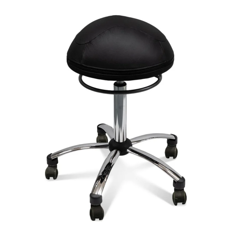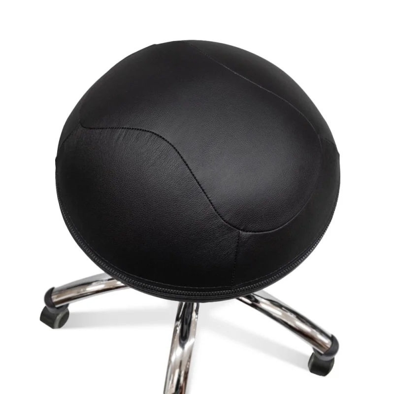 The Sphare pro cosmetic stool features an ergonomic half-ball saddle seat that prevents back pain caused by long hours of sitting. It effectively stimulates deep muscles, keeping the back in excellent condition. The seat of the chair is equipped with an inflatable cushion, a removable cushion that can be used as an exercise device.